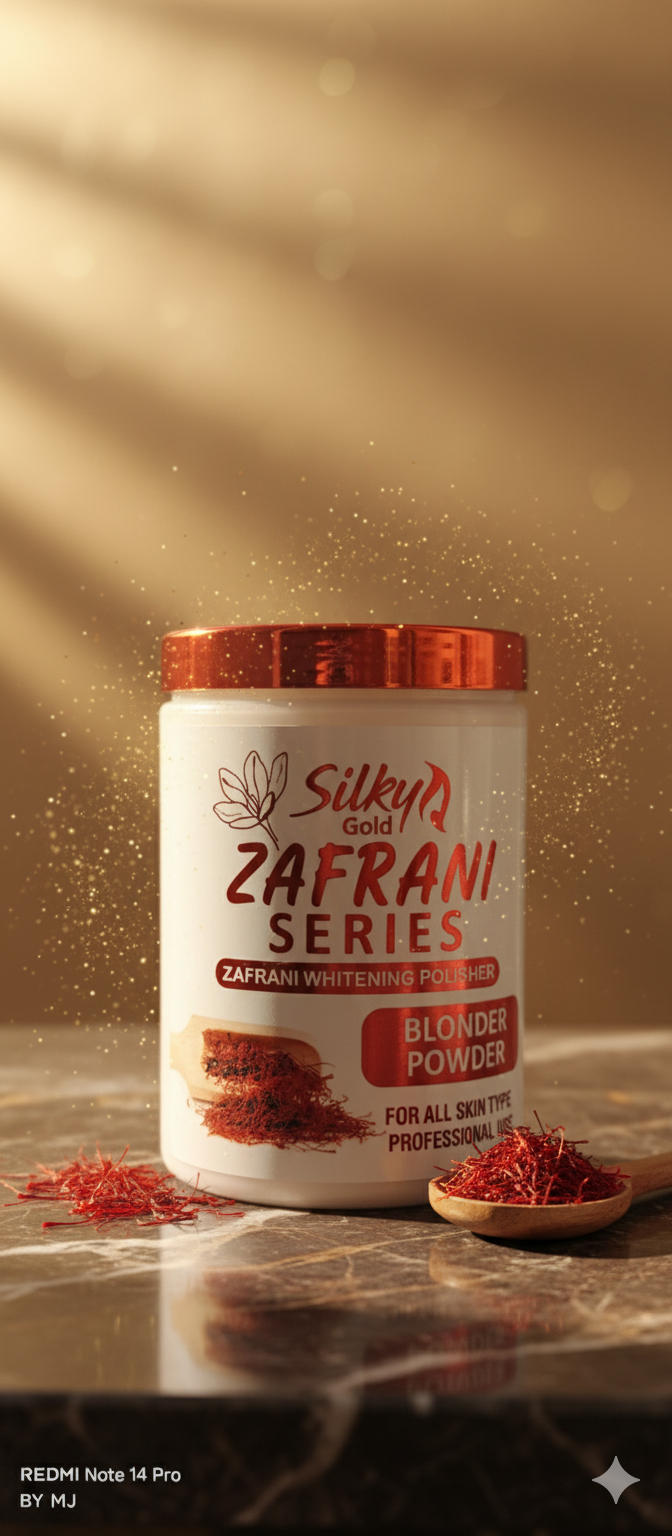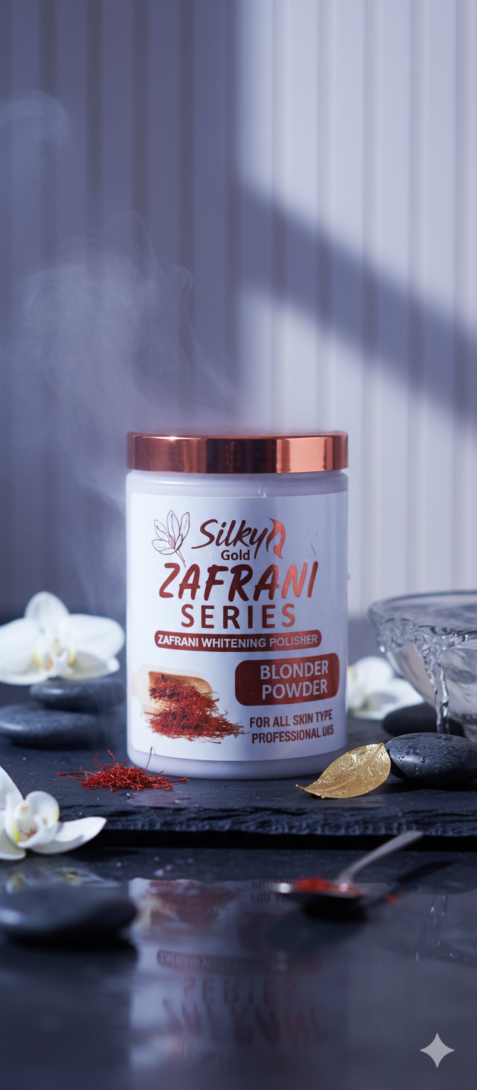 Brighten and polish your skin with the Silky Gold Zafrani Series Whitening Polisher/Blonder Powder. This specialized powder is infused with Zafrani (Saffron), known for its skin-brightening properties. The Blonder Powder is formulated to be a professional-grade skin polisher suitable for all skin types, helping to lighten the appearance of hair and providing a radiant, glowing complexion.
