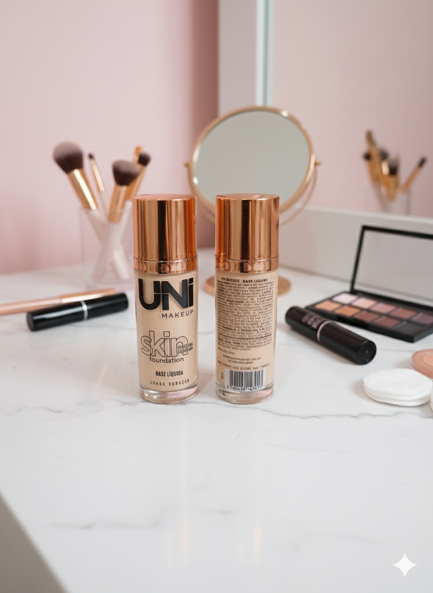 Achieve a flawless, radiant complexion with the UNI Makeup Skin Liquid Foundation. This luminous base liquid foundation is designed to seamlessly blend, providing buildable coverage for a smooth, natural-looking finish. Its elegant packaging with a rose-gold cap will look beautiful on any vanity. Perfect for daily wear or special occasions!